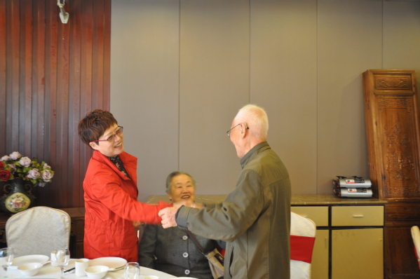 公司领导和同志们或帮老同志照相,或小心搀扶,与老教师们拉家常,嘘寒问暖,畅谈国家和学校学院喜人变化,其乐融融。