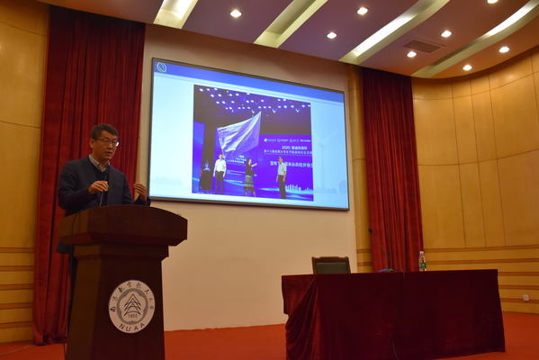 辛公明讲述了在参加科创竞赛中,要学会“小题大做”。他和同学们交流,参加高层次赛事,也要学会细致入微小地从“小题目”出发再做大做精。他希望同学们能够积极投身创新实践,大胆尝试辅之反复验证,深入剖析而后突破短板,从而大幅提升创新实践能力。