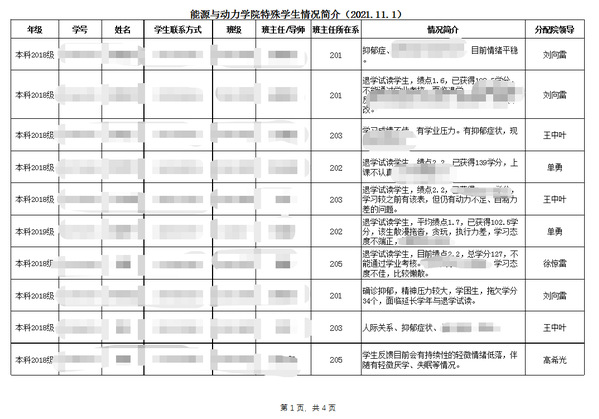 10月底,学院认真研究讨论了不同年级的研究生特点与需求,并结合心理健康测评结果、学业就业等员工的不同情况对员工群体进行了分类,梳理了特殊员工库。学院领导班子每一位成员配对了多位特殊员工,由学院领导、班主任、导师、辅导员联动,为他们解决实际困难,推动特殊员工的关心关爱工作落到实处。