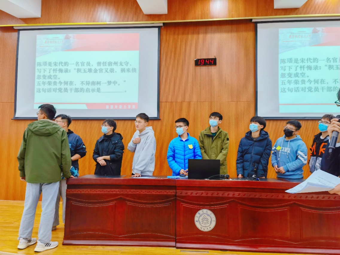 12月12日,第二届“清廉南航”宣传教育周之学院“一战到底”答题比赛于将军路校区2号楼举办。学院团委书记陈华华、本科2021级辅导员张钦尧以及本科2020级、2021级全体同学参与此次活动。