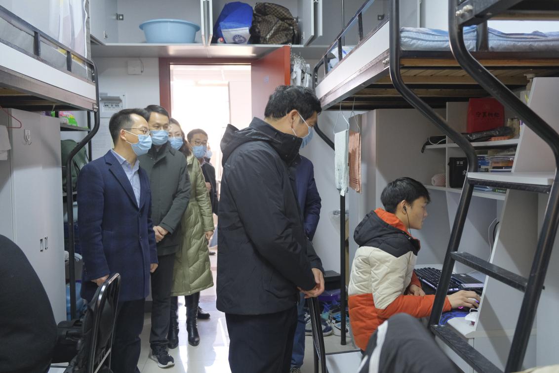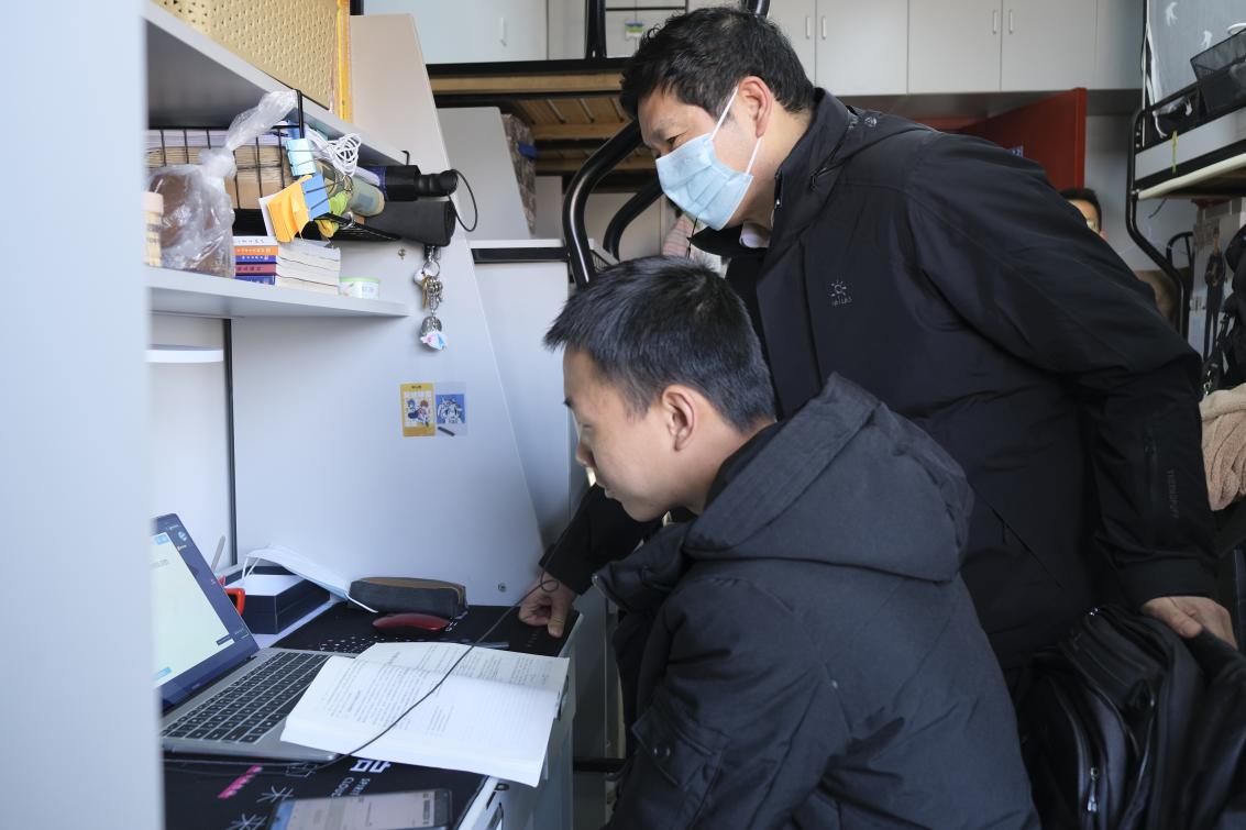 新学期如约而至,学院的师生们带着新的心情、新的目标,以满分的状态迎接新学期,以十足的动力开启新征程。2月21日,新学期开学第一天,公司党委书记郑永安、公司党委副书记刘宇雷一行深入员工宿舍,与同学们亲切交流,详细了解同学们线上学习的情况。
