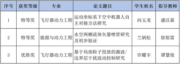 5月28-29日,第三届全国高等学校航空航天类专业本科毕业设计成果交流会在南京理工大学顺利举行。经院内申报、校级培优、学院多轮评审和赛前选拔,学院飞行器动力工程专业向玉龙、许耀宇和能源与动力工程专业兰炳松三位大四员工获得本次交流会特等奖2项(全国特等奖共13项)、优胜奖1项。其中特等奖数量创历史新高。