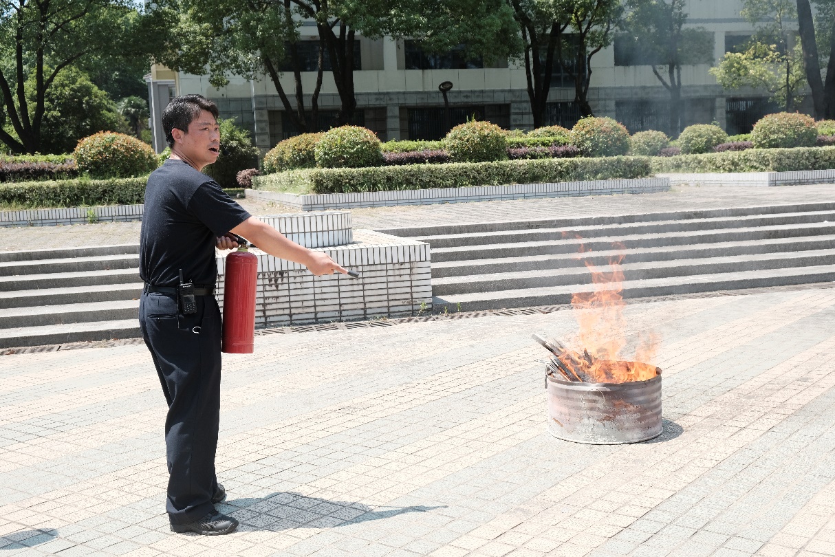 保卫处接到火灾报警后,立刻通知巡逻队员开展人员疏散与火灾扑救,并根据现场校卫队员反馈的情况适时启动了应急预案,拨打了119向消防部门求助。在疏散过程中,某员工模拟发生急性胳膊扭伤、头部挫伤的情况,医务人员接到报警后立即赶赴现场,并展开救治。消防疏散演练结束后,部分安全重点部位师生前往逸夫科学馆门口进行消防灭火实操。