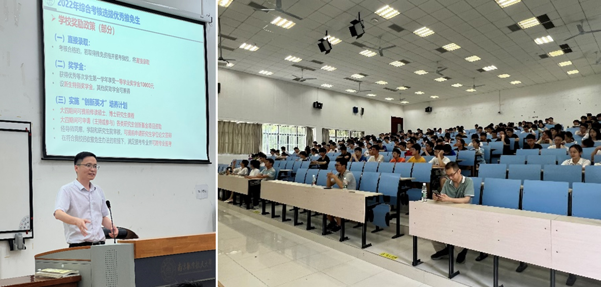 会议伊始,赵万忠向同学们介绍了学院研究生招生的总体情况,并以详实的数据说明推免(含直博)的留院比例、学校政策、学院奖励和发展前景,以及统考的科目、大纲、复试线、注意事项等。