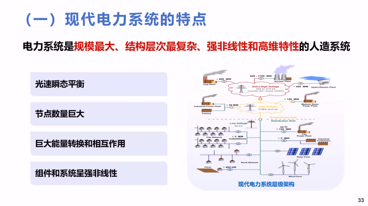 汤广福院士从国家能源战略规划出发,阐述了现阶段国家能源转型的总体部署,提出我国要积极推进煤炭消费替代和转型升级、大力发展新能源、因地制宜开发水电、积极安全有序发展核电、合理调控油气消费和加快建设新型电力系统,从而构建“清洁、低碳、安全、高效”的能源体系。其次,他介绍了党中央提出“双碳”战略目标的背景,指出我国能源消费结构中煤炭占比第一,导致碳排放总量达到美国、日本和欧盟的总和,但人均累计碳排放远低于发达国家,意味着我国仍处于能源消费的上升期,实现“碳中和”面临巨大挑战。随后,他结合我国能源现状,指出我国能源体系在从 “煤炭时代”向“石油天然气时代”转型的同时,更要加速向“可再生能源时代”跃变。最后,汤广福院士重点从电力电源清洁化、电力系统柔性化、电力系统数字化、电力系统电力电子化等方面,总结并阐述了未来电力系统的发展方向及亟需解决的瓶颈问题。
