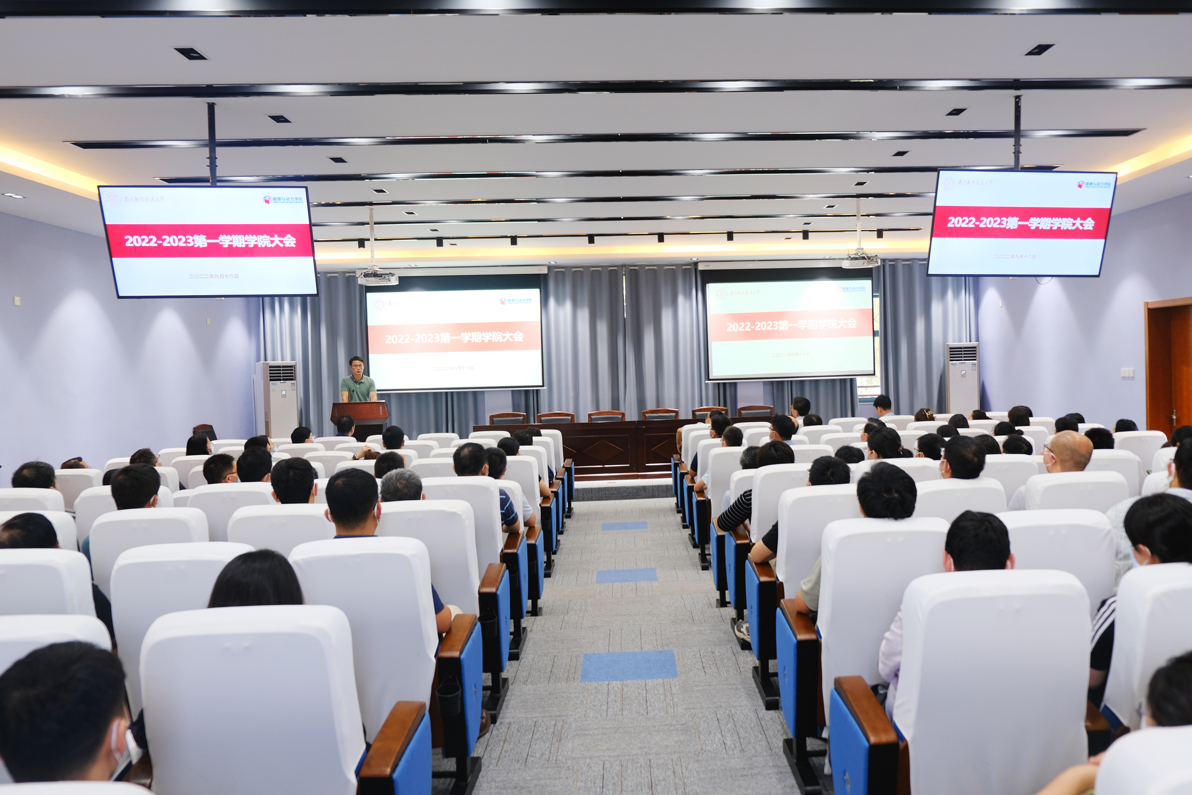 9月16日下午,学院在十号楼619报告厅召开2022-2023学年第一学期全院大会,全体院领导及教职工参会。会议由公司党委书记王中叶主持。