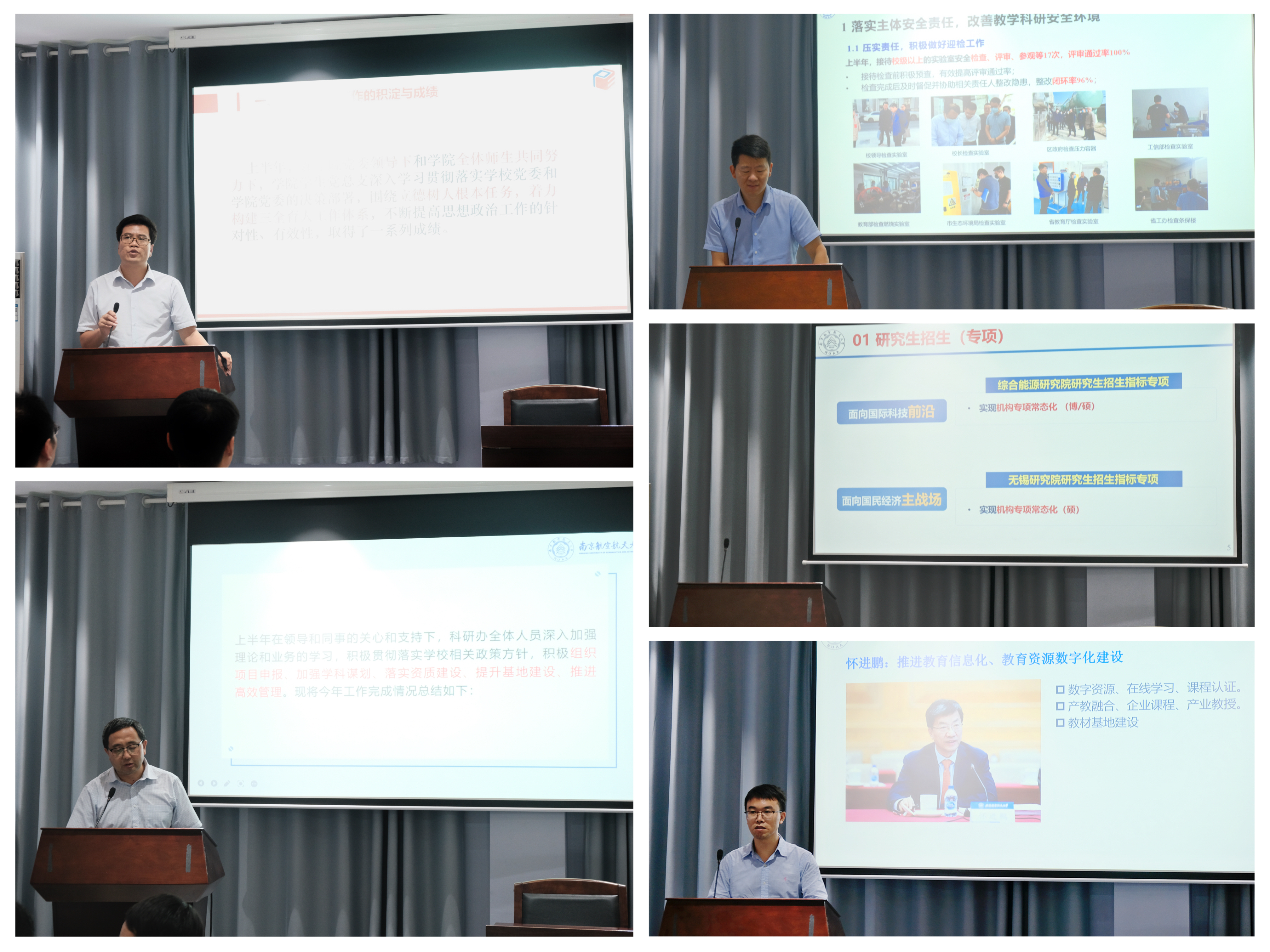 王中叶作全院大会总结。他针对学院职称评审、自然基金、本科教学、研究生招生、员工工作等方面进行了工作点评,肯定成绩的同时指出存在的问题及不足,并提出了工作要求。王中叶指出学院在全面落实学校“稳字当头、稳中求进”工作总基调的同时,要进一步勇挑航空航天民航特色彰显的“主导”、双一流团队建设和发展的“主力”、全要素立德树人和培养的“主流”责任。王中叶对学院下半年工作进行了全面部署,他强调学院上下要进一步提高政治站位,明确“守底线、促发展、激活力”的工作思路,围绕党的二十大、七十周年校庆和第十七次党代会等重点工作,系统谋划好学院的各项工作。