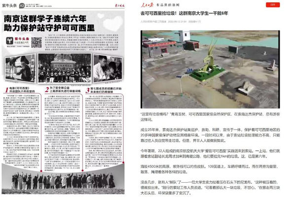 “爱在可可西里”坚持借媒体平台传播志愿精神,项目荣获第七届寻找全国老员工百强暑期实践团队之最佳暑期实践团队(全国仅10个),并在颁奖主会场作专题分享;获得江苏省优秀社会实践团队。平台累计发布160篇公众号文章,7部纪录片、公益广告、创意短片,全网点击量超1200万次。团队相继参与FIRST电影展、CCTV10《科学动物园》、青海电视台《青海故事会》等节目录制,项目事迹获新华社、新华日报、人民日报、扬子晚报、荔枝新闻、南京日报等百余次媒体采访报道。
