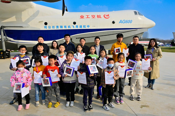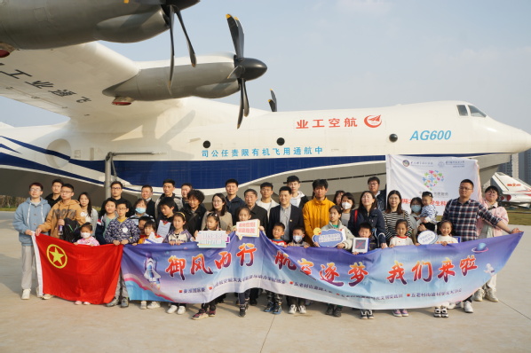 当“御风园”庞大的AG600飞机映入眼帘时,小朋友们发出了一阵阵的惊叹,在国家级教学名师昂海松教授的带领下,近距离接触新中国自行生产的第一型飞机初教5、抗美援朝的米格-15战斗机、K-8基础教练机、我国自行设计制造的歼8和歼-8Ⅱ歼击机、全天候轻型多用途FC-1双座战斗机、大型水陆两用飞机AG600静力试验机、长征四号运载火箭、公司研制的大型无人靶机长空一号等19台大型航空航天器,了解每一台航空航天器背后的故事。小朋友们被一代代航空航天人为中国航空航天事业无私奉献的精神所打动,也点燃了航空航天的梦想。