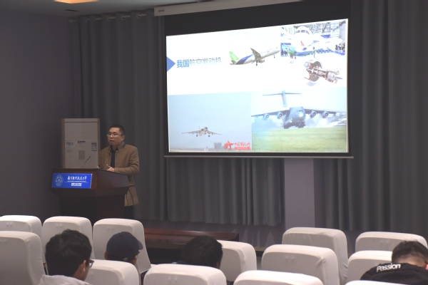 中国航发沈阳黎明团委书记、人力资源部副部长郑树宝以黎明公司发展历程为主线,讲述了我国航空工业的艰辛发展史,用航空先驱投身航空事业的英雄事迹,勉励同学们秉持航空报国精神,积极投身到社会主义现代化强国的建设中去。