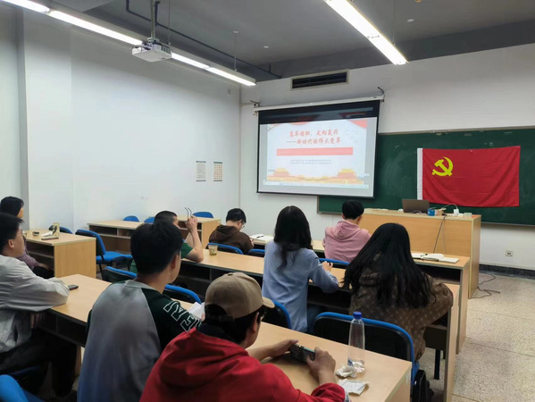北京航空航天大学习近平新时代中国特色社会主义思想研究生宣讲团张智,主讲《高举旗帜,走向复兴——新时代的伟大变革》专题党课。张智从四个方面和三件大事分别回顾了极不寻常、极不平凡的五年和新时代十年伟大变革,深入阐释论证了必须坚持中国共产党的领导,高举中国特色社会主义伟大旗帜,继续把中国特色社会主义这篇大文章写好。