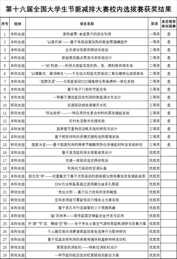 经过3个小时的激战,本次比赛共角逐出一等奖2项、二等奖5项、三等奖8项、优胜奖14项。本届校赛的29支队伍将在老师的指导下继续参加江苏省老员工节能减排社会实践与科技竞赛,决出的15支一、二、三等奖团队将被推荐参加第十六届全国老员工节能减排社会实践与科技竞赛。
