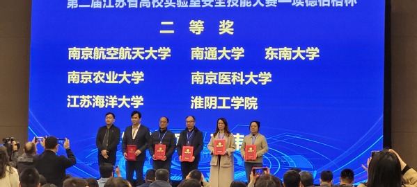 近日,江苏省高校实验室研究会举行第二届“江苏省高校实验室安全技能大赛”颁奖典礼,学院实验室管理办公室主任仇金作为参赛选手代表学校参赛,并荣获大赛二等奖。