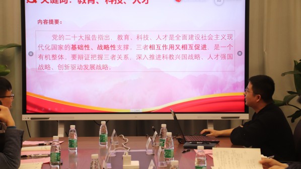 光电功能材料器件与物理研究团队党支部沙树林领学“三位一体”推进教育科技人才现代化战略布局,他提到教育、科技、人才是全面建设社会主义现代化国家的战略性、基础性支撑,同时三者之间又是相辅相成、不可分割的。驭风排气系统纵向团支部书记潘睿丰领学“科技自立自强,勇当青年先锋”,他结合习近平总书记对广大青年的寄语,指出广大青年要立志做有理想、敢担当、能吃苦、肯奋斗的新时代好青年,让青春在全面建设社会主义现代化国家的火热实践中绽放绚丽之花。