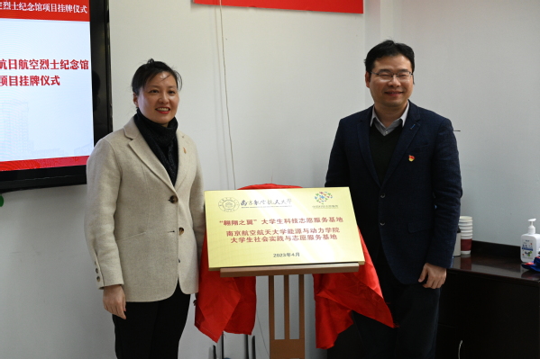 4月7日下午,学院“翱翔之翼”老员工科技志愿服务团联合南京抗日航空烈士纪念馆(以下简称纪念馆)为学院2023届硕士毕业生党员讲授沉浸式党课,并举行共建合作基地的揭牌仪式。纪念馆党委书记兼馆长薛莲、学院经理毛军逵出席活动并致辞,公司党委副书记樊小杰、团委书记陈华华、辅导员赖劲如,纪念馆各部门主任以及硕士毕业生党员代表,共30余人参加活动,活动由公司党委副书记樊小杰主持。