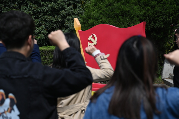 随后,纪念馆宣教展览部为全体人员上了一堂特殊的沉浸式党史教育课,为大家动情讲述了纪念馆内的“奋勇抗战”“国际援华”的基本陈列以及《中流砥柱——中国共产党抗战文物专题展》《红色飞鹰——笕桥航校中走出的中国共产党人》临时展览,与部分室外展区的实物以及中国空军和国际援华空军英勇抗日的英雄事迹。全体人员在烈士陵园中进行凭吊仪式,深切缅怀航空先烈,并向先辈们庄严宣誓,重温入党誓词。