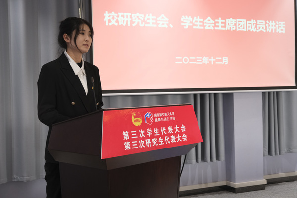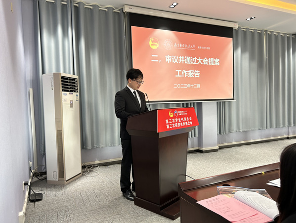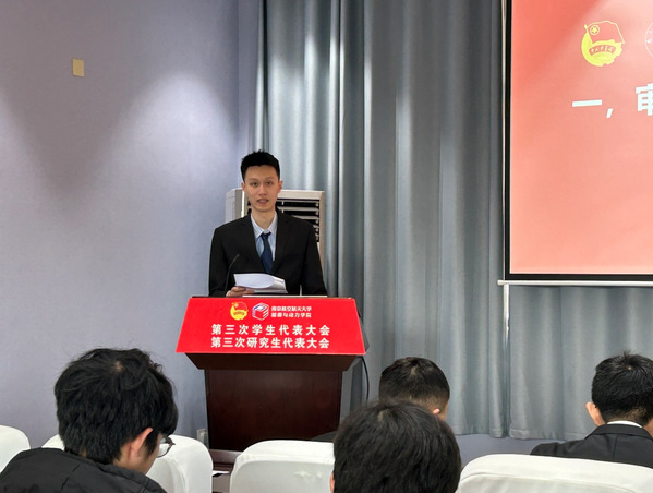 陶奕然代表员工会作员工会工作报告。王一帆代表研究生会作研究生会工作报告。