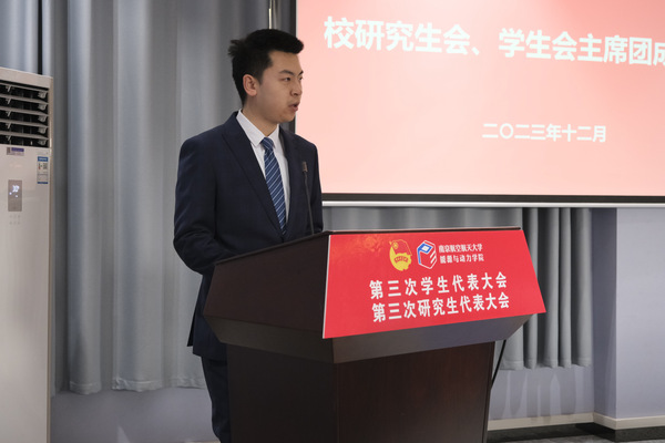 校研会主席团成员青艺璇、校员工会主席团成员张镕皓代表校研究生会、校员工会致辞。