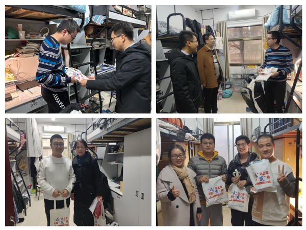 寒冬将至,2024年考研进入了最后冲刺阶段。为鼓舞考研学子士气,增强考研信心,缓解考研压力,威廉希尔开展“筑梦研途”之“研途送温暖”活动。12月11日下午,公司党委书记徐川、公司党委副书记樊小杰、班主任代表李秋红、2020级辅导员和学院本20级第一党支部、第二党支部党员志愿者走进员工宿舍,为180余名考研员工送去助考礼包与祝福。