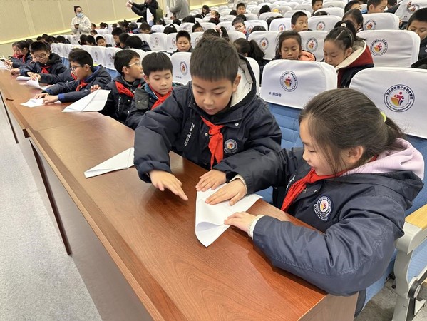 趣味折纸活动环节。志愿者代表从折纸的历史与折纸在航空、航天工程应用两个方面进行介绍,展示了折纸艺术的魅力,引得小员工们阵阵惊叹。活动的最后,志愿者代表通过讲解与演示结合的方式,指导小员工折叠歼-20纸飞机模型,寓教于乐,让他们在实践中收获成长。