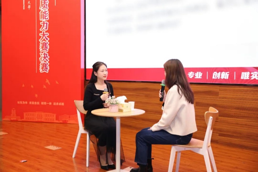 决赛分为个人展示、案例分析和谈心谈话三个环节。第一个环节中,参赛选手以召开第一次新生月讲评的形式作个人风采展示。