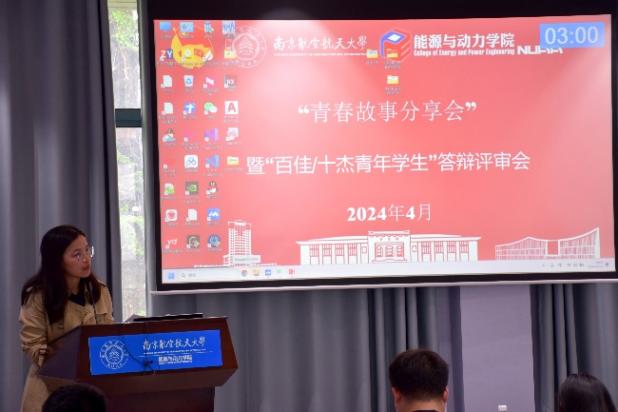为深入学习贯彻习近平总书记同团中央新一届领导班子集体谈话时的重要讲话精神,充分激发能动学子在新时代航空强国中挺膺担当,进一步表彰先进,树立典型,4月12日,学院在明故宫校区十号楼619报告厅举办“青春故事分享会”暨百佳青年、省级评优答辩评审会。公司党委副书记樊小杰,班主任代表李井华、郑前钢、谢旅荣、刘璐璐、周冠、杨理理,团委书记陈华华及各年级辅导员老师担任评委。